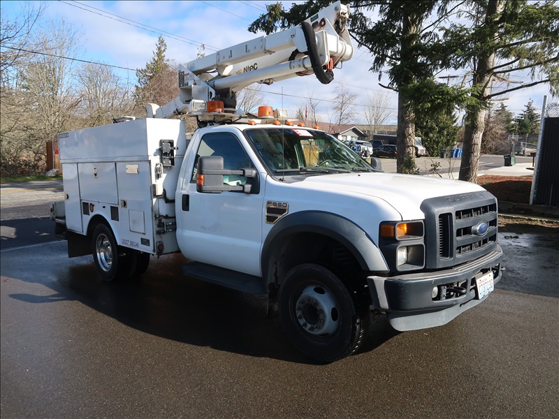 BUCKET TRUCK, V8, POWER STROKE DIESEL, AUTO, ALTEC AT37-G HYDRAULIC, 350 LB CAP, 37' BUCKET, REMOTE PENDANT, 10-DOOR S/B, DUAL TANK, 2-REMOTE CONTROL SPOT LIGHTS, SIGNAL MASTER, HITCH CAM, DIMENSIONS PURE SIN INVERTER, PTO, 5" VISE