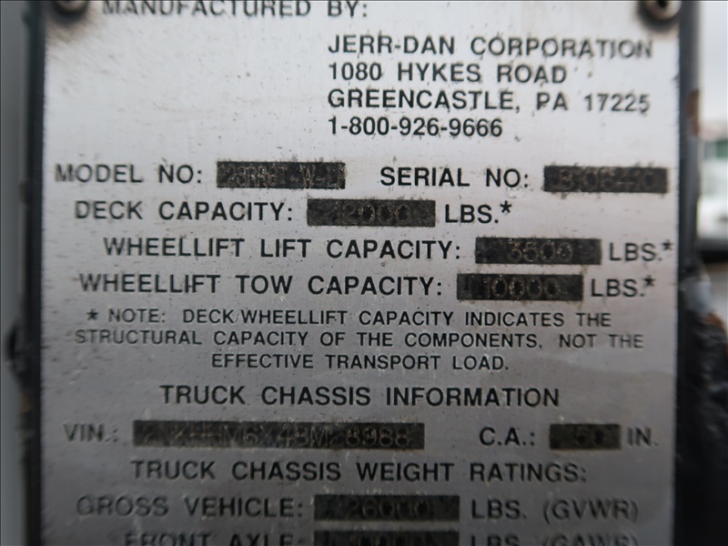 S/A ROLLBACK TRUCK, PACCAR PX6-300, ALLISON 2500RDS AUTO, DANA SPICER P20060S REAR W/4.33 RATIO, JERR DAN 22SRR6N 22' STEEL DECK W/ REMOVABLE SIDES, RAMSEY HD234 WINCH, WHEEL LIFT, AIR BRAKES, REMOTE