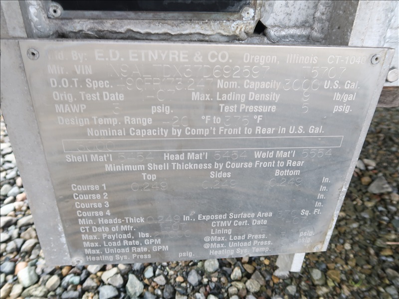 3,000 GAL JACKETED INSULATED ALUMINUM TANK