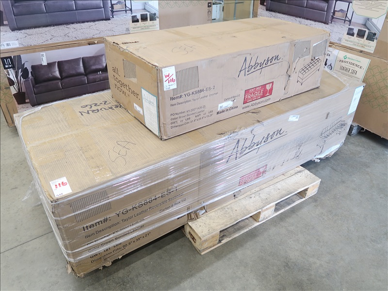 TAYLOR BROWN LEATHER REVERSIBLE SECTIONAL W/OTTOMAN, 90.5" X 35" X 21"