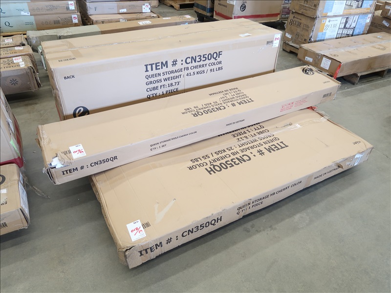 QUEEN STORAGE HEADBOARD, FOOTBOARD & RAILS (3 BOXES)