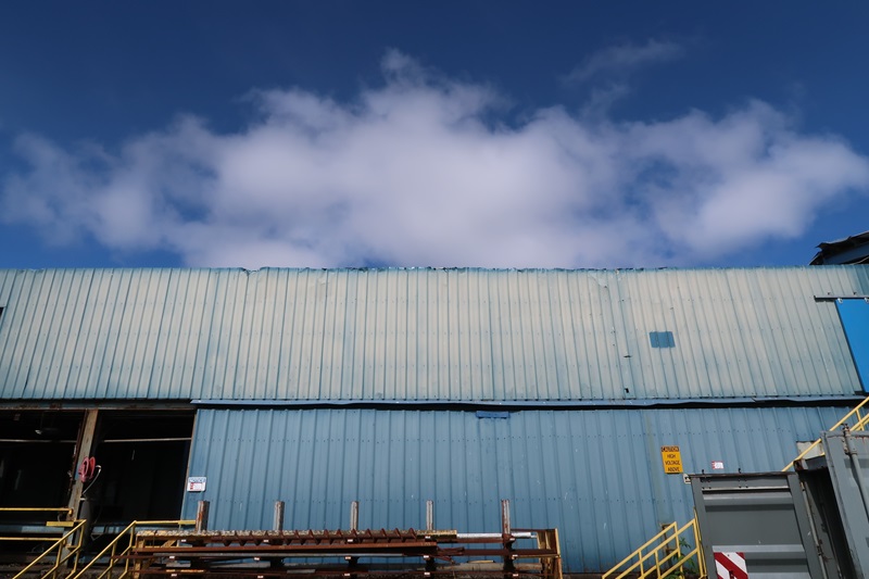 IRREGULAR SHAPED ALL STEEL MILL BUILDING, TIN ROOFS ONLY OVER CHIPPER, HOG & DEBARKER INCLUDES TIN SIDING ALONG BACK OF MILL (PLEASE CONSULT AUCTION SITE REP PRIOR TO BIDDING)