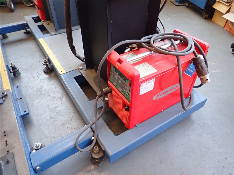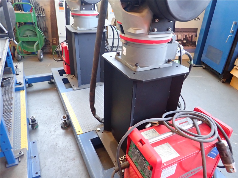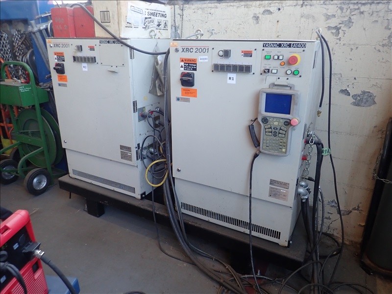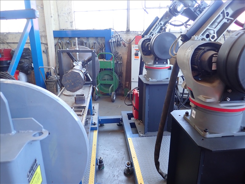 ROBOTIC WELDING SYSTEM W/(2) MOTOMAN EA1400 ROBOT WELDERS, (2) FRONIUS TRANSPULS SYNERGIC 4000 POWER SUPPLIES, KOIKE ARONSON RHS1.5 1,500 LB POSITIONER, (2) YASNAC XRC 2001 POWER SUPPLIES, PENDANT CONTROLS, STEEL FRAME & ACCESSORIES