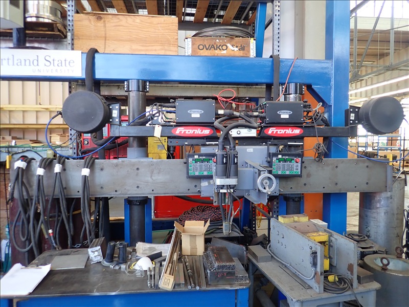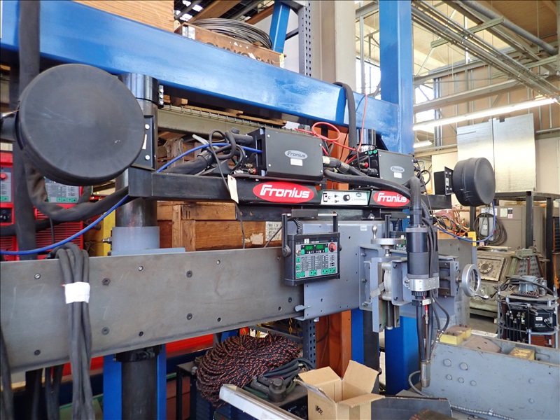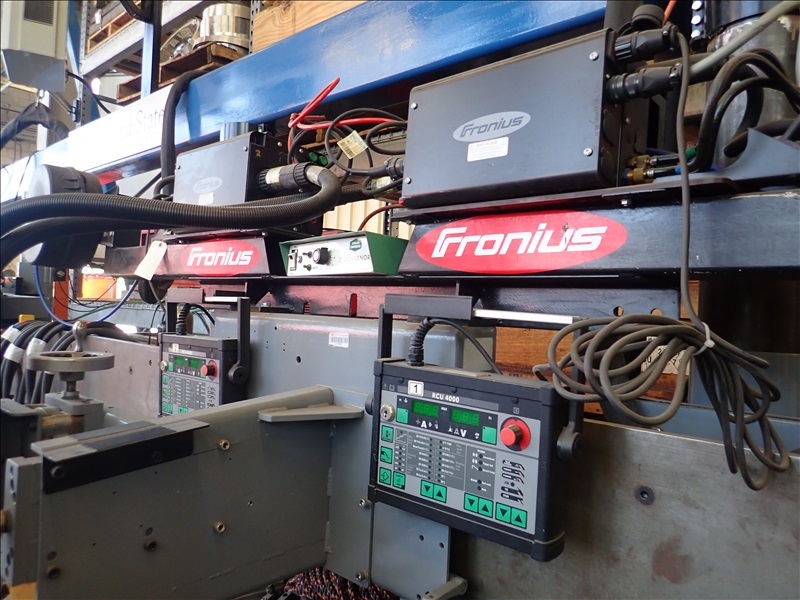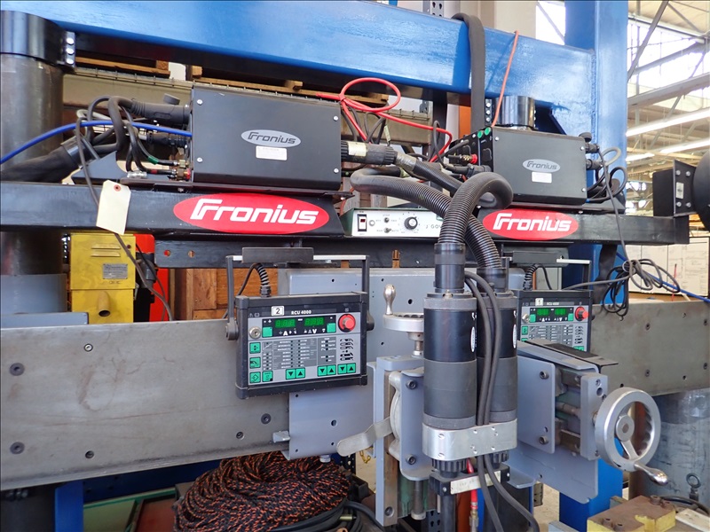 11' WELDING SYSTEM W/(2) FRONIUS TRANSPULS SYNERGIC 5000 POWER SUPPLIES, (2) RCU 4000 CONTROLLERS, DUAL HEADS, UNION CARBIDE "J" GOVERNOR