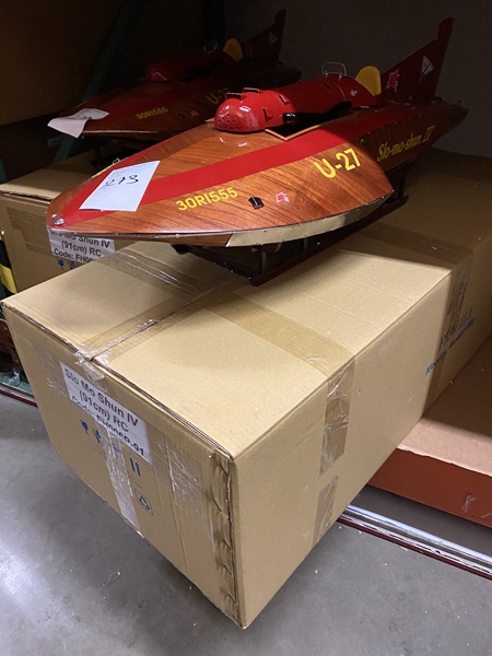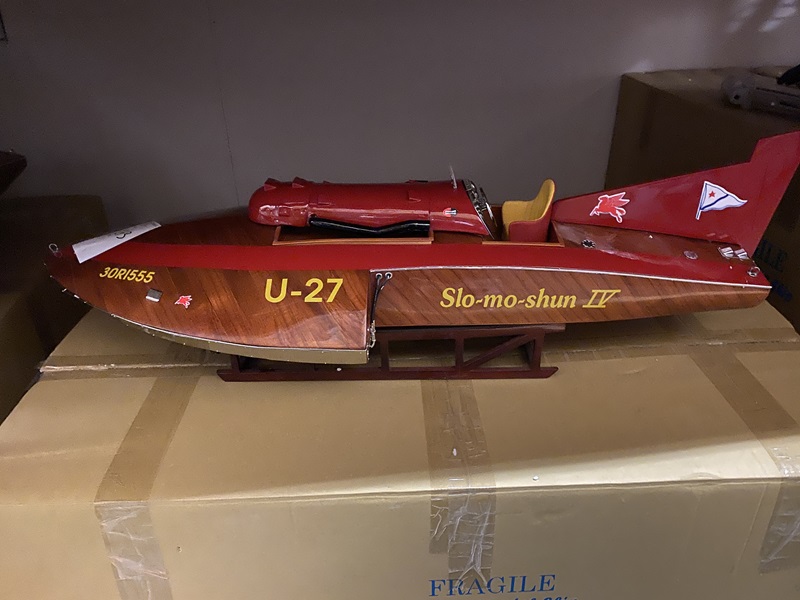 Slo-mo-shun IV (with box) Dimension approx.: 30? L x 12.5? W x 8.5? H – Scale 1:12. The model is already built, NOT a model ship kit. Can converted to radio control.