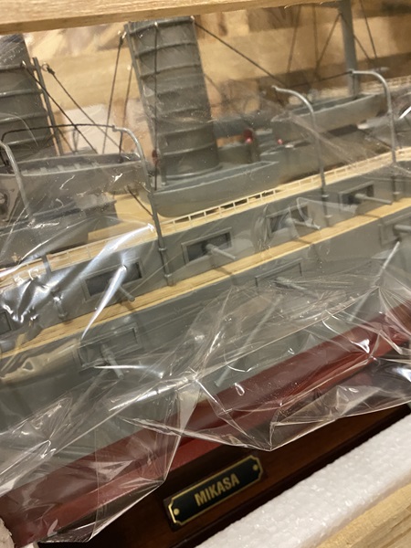 Mikasa battleship model (in wooden crate) Dimension approx.: 40" L x 10" W x 20" H. The model is already built, NOT a model ship kit.