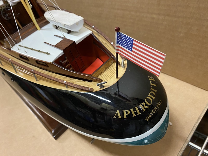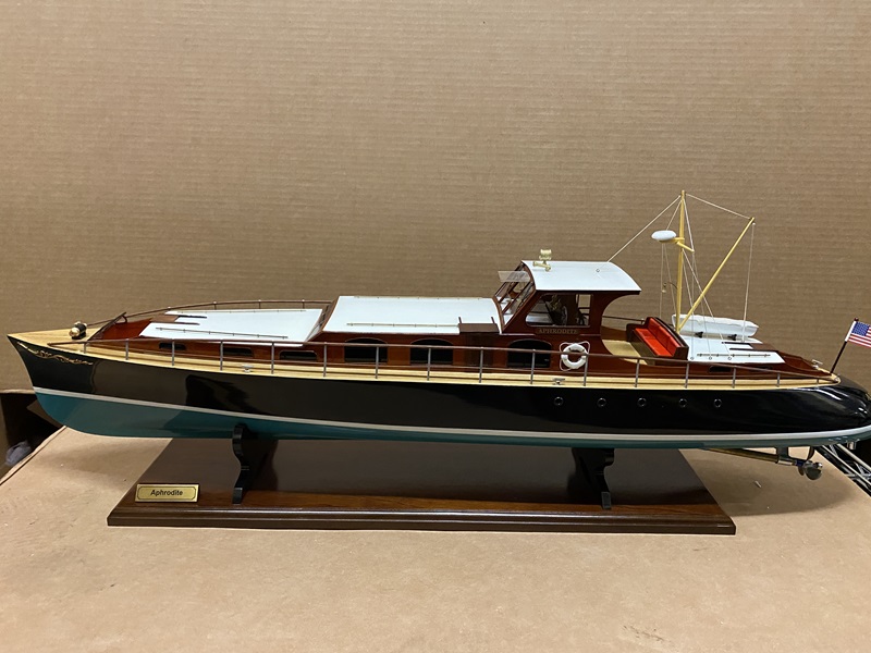 Aphrodite yacht (with box) Dimension approx. 35? (long) x 7? (wide) x 12? (high). The model is already built, NOT a model ship kit.