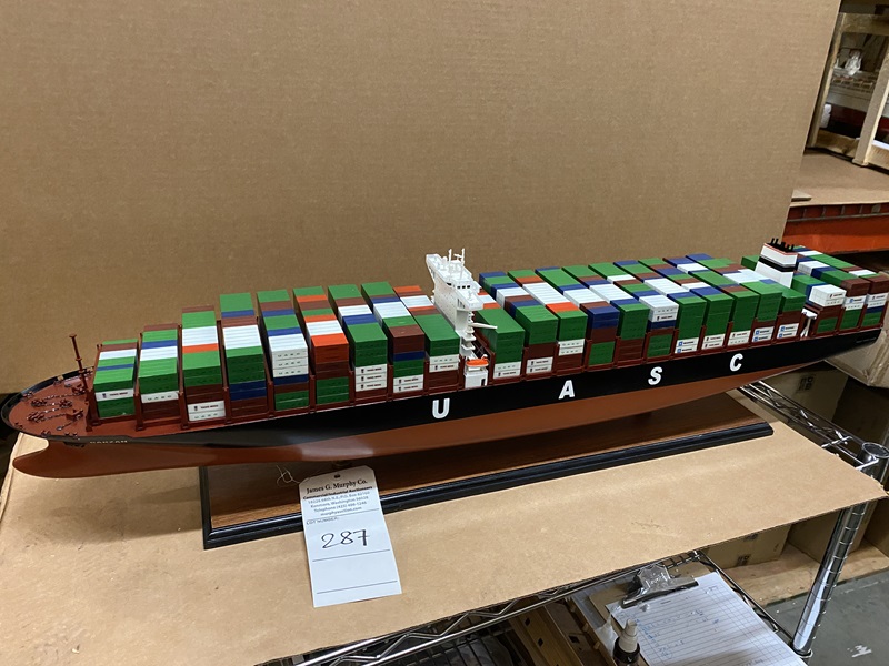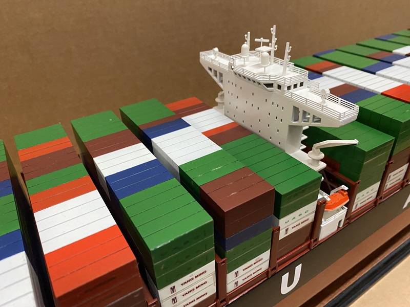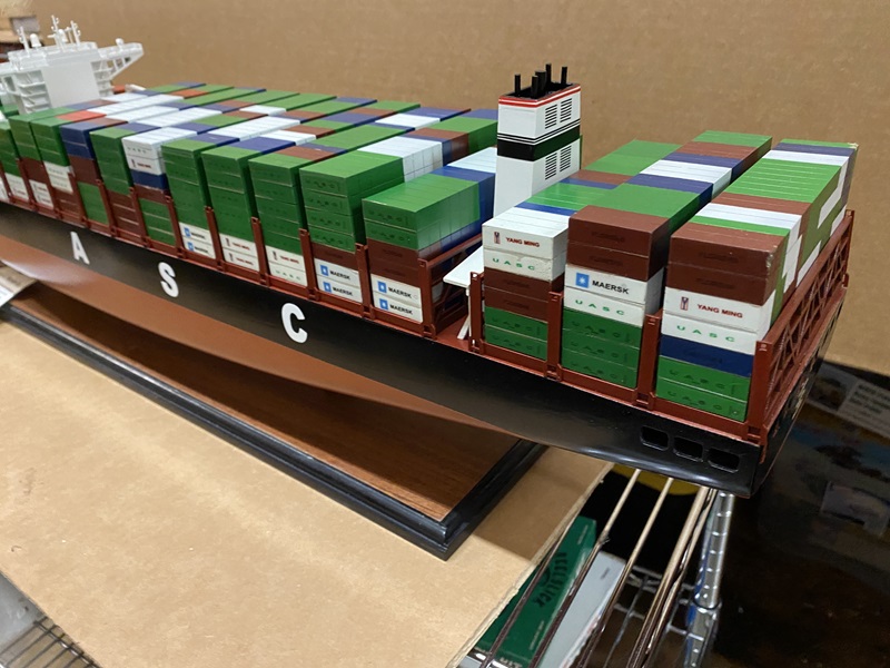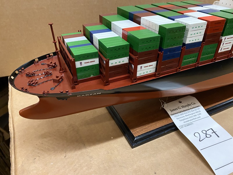 Barzan Container Ship Model Dimension approx.: 39.5? L x 6? W x 10? H. Scale 1/400. The model is already built, NOT a model ship kit.