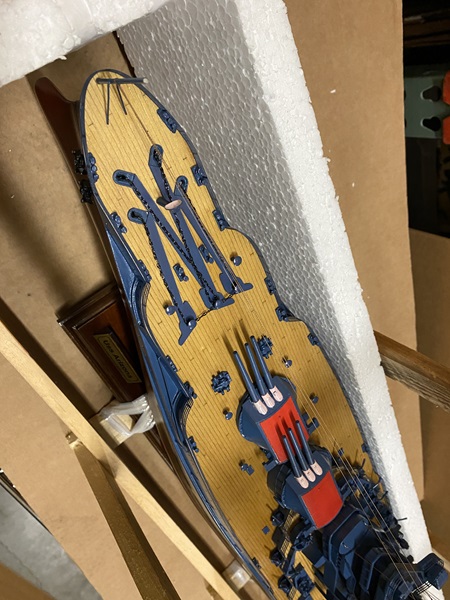 USS Arizona ship model in wooden crate with box Dimension approx.: 36.5? L x 6? W x 13.5? H. The model is already built, NOT a model ship kit.