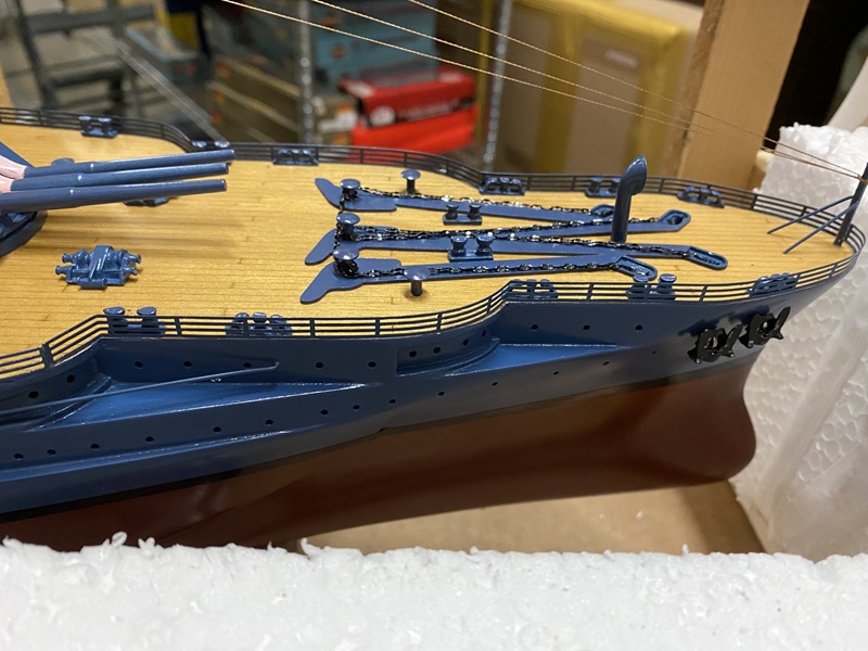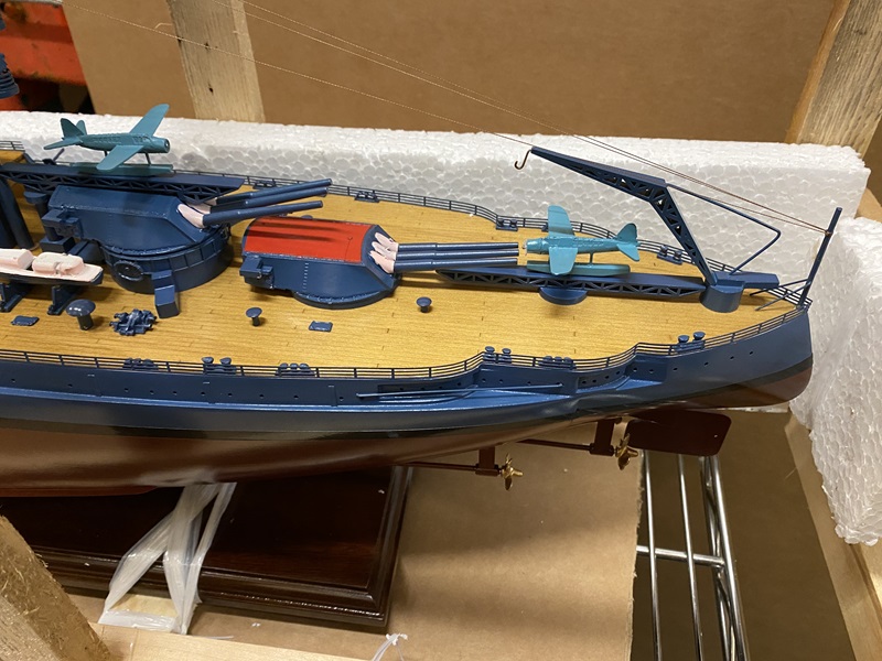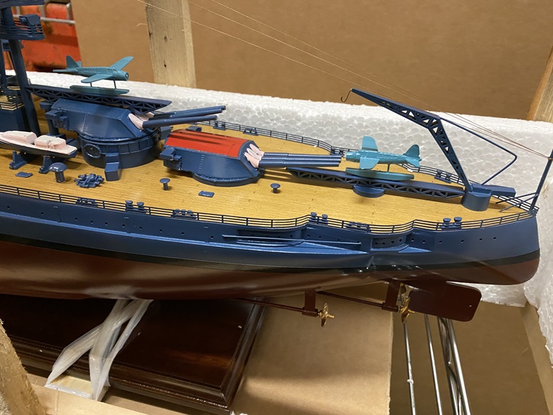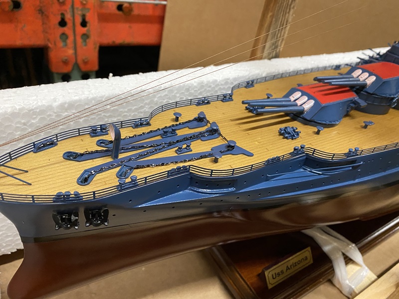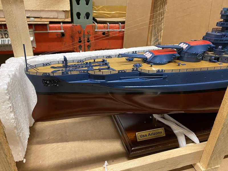 USS Arizona ship model in wooden crate with box Dimension approx.: 36.5? L x 6? W x 13.5? H. The model is already built, NOT a model ship kit.