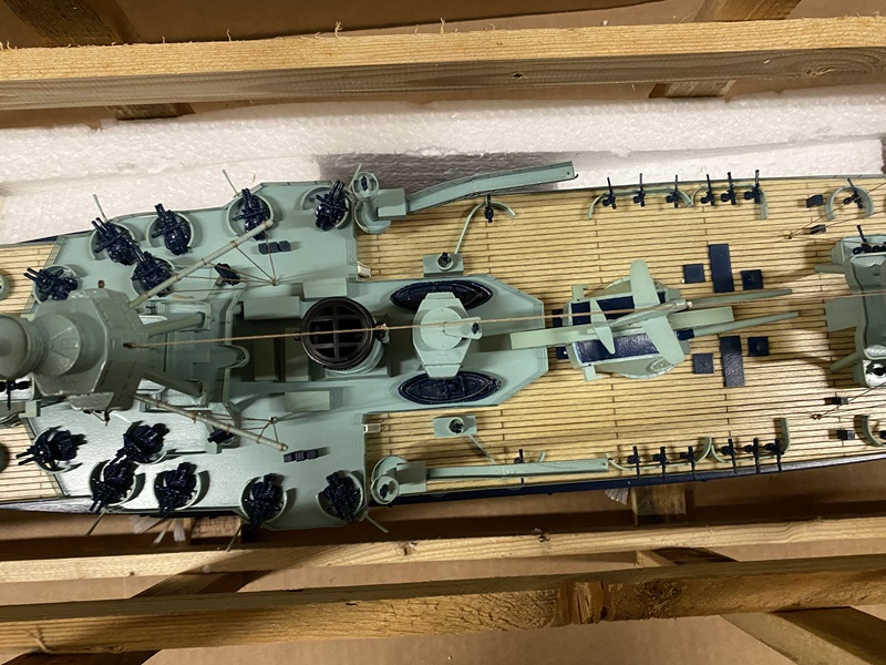 USS Texas battleship model in wooden crate with box Dimension approx.: 36? (long) x 7? (wide) x 12? (high). Scale 1/200. The model is already built, NOT a model ship kit.
