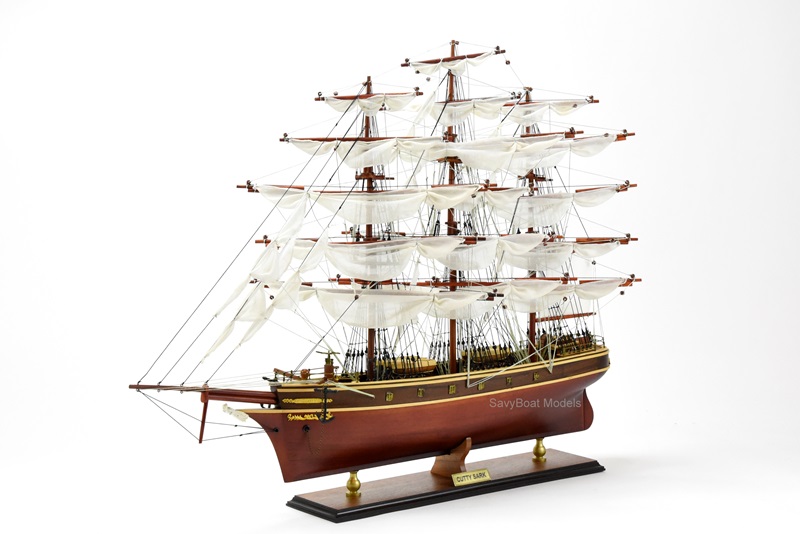 Cutty Sark ship model in wooden crate Dimension approximate: 34" (long) x 9" (wide) x 26" (high). The model is already built, NOT a model ship kit