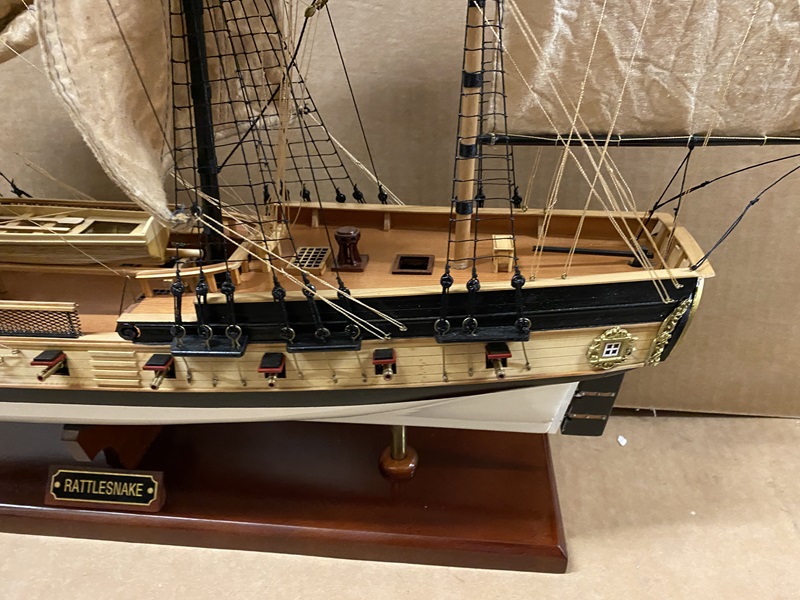 USS Rattlesnake ship model Dimension approx.: 28? (long) x 9? (wide) x 20? (high). The model is already built, NOT a model ship kit