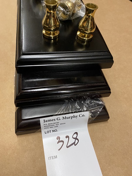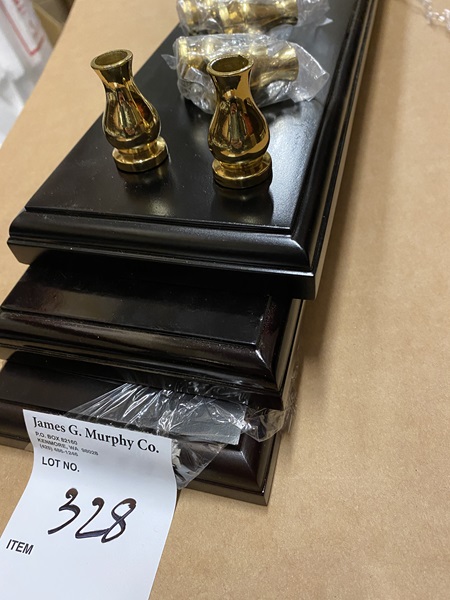Lot of 3 ship model bases (approx. 5" x 27" x 1") with 6 brass pedestals
