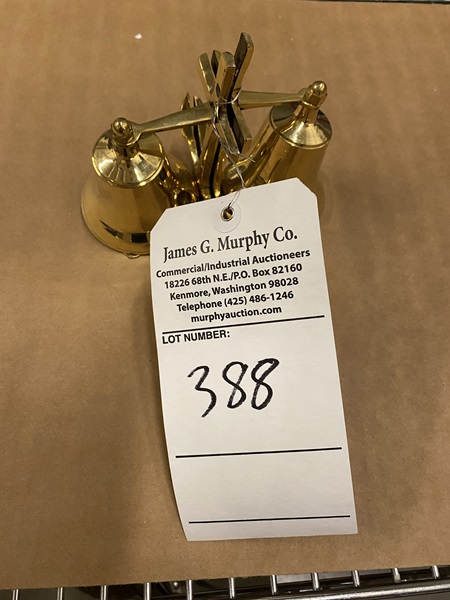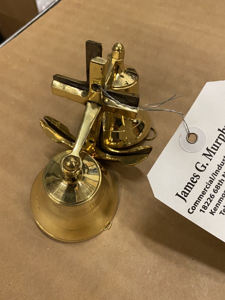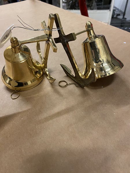 02 brass bells approx. 5" H x 3" Dia