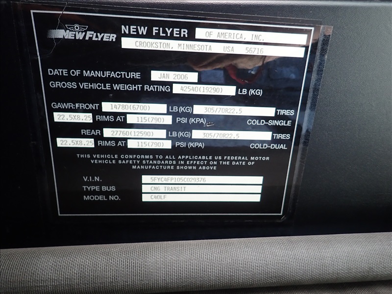 39-PASSENGER KNEELING BUS, CUMMINS 8.3L CNG, HOUR METER READS: 47,910 (NO FARE COLLECTORS, RADIOS OR CAMERA SYSTEM)