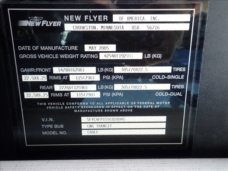 39-PASSENGER KNEELING BUS, CUMMINS 8.3L CNG, HOUR METER READS: 54,711 (NO FARE COLLECTORS, RADIOS OR CAMERA SYSTEM)