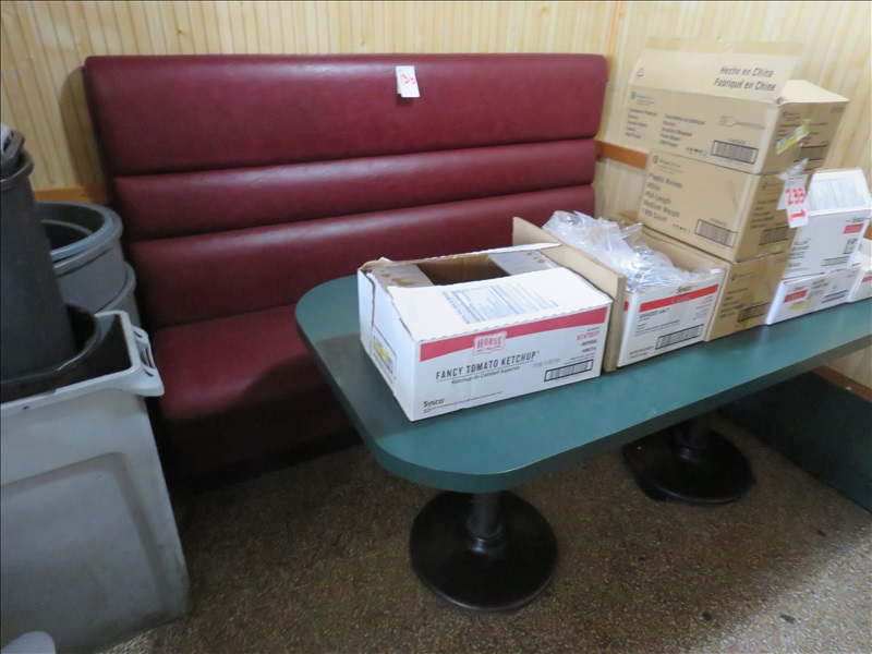LOT, (1) 64" X 31" DOUBLE PEDESTAL DINING TABLE & (1) 71" SINGLE SIDED BOOTH SEAT