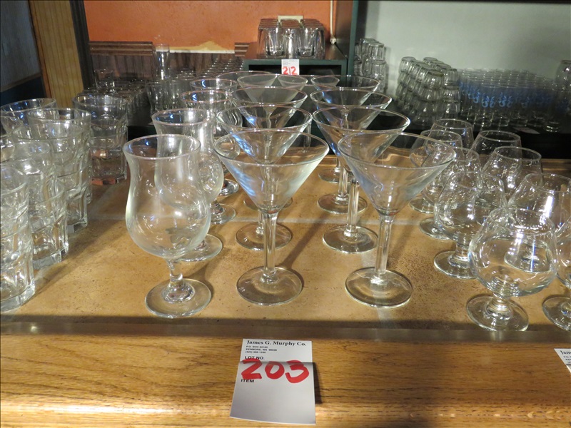 LOT, (10) MARTINI GLASSES & (4) HURRICANE GLASSES