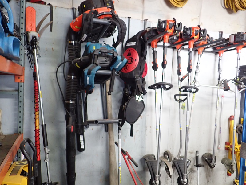 (2) BACK PACK BLOWERS, (8) LINE TRIMMERS, (2) SHEET ROCK JACKS