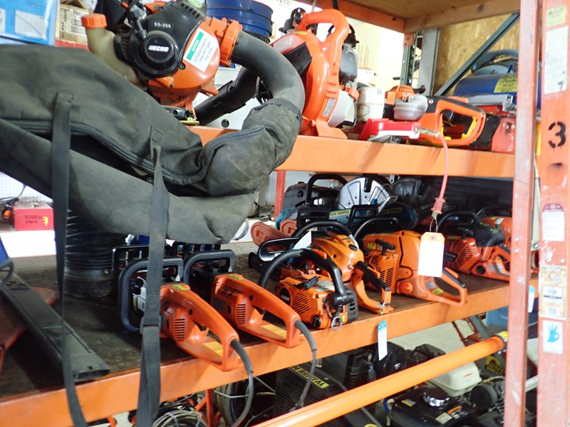 (2) ELECTRIC & (4) GAS CHAIN SAWS, (3) SUBMERSIBLE PUMPS, (2) MAKITA HOT SAWS, (2) BLOWERS, (2) HEDGERS