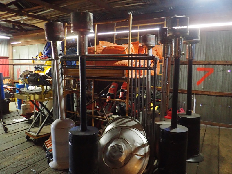 (6) PATIO HEATERS, INSULATION BLANKETS, FANS