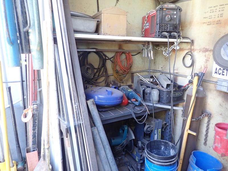 LINCOLN WIRE FEED, CHOP SAW, GRINDER, CLAMPS, PEDISTAL GRINDER, BENCH VISE, CHAINS