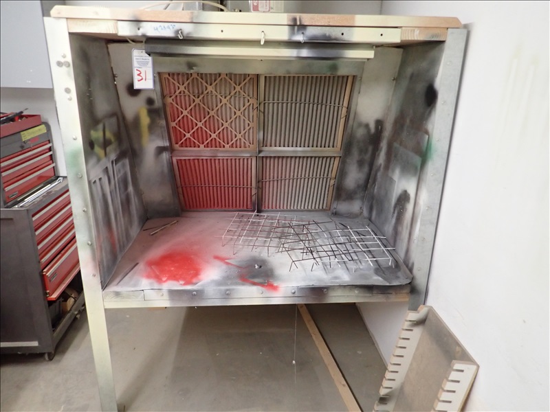 56" X 36" DEEP X 42"H BOLT TOGETHER PAINT BOOTH, DAYTON 18" 1/2 HP VENTILATION FAN (BUYER IS RESPONSIBLE TO DISASSEMBLE TO FIT THROUGH THE DOOR)