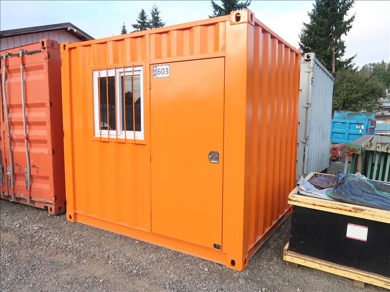 9'L X 7'2"W X 8'3"H PORTABLE OFFICE CONTAINER W/SIDE DOOR, WINDOW & DOUBLE SWING END DOORS W/FORK POCKETS (UNUSED)