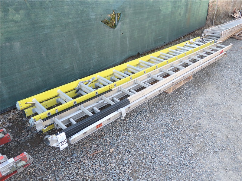 LOT, (3) 14' FIBERGLASS EXTENSION LADDER SECTIONS, (1) 14' & (2) 12' MANHOLE LADDERS ON THIS PALLET