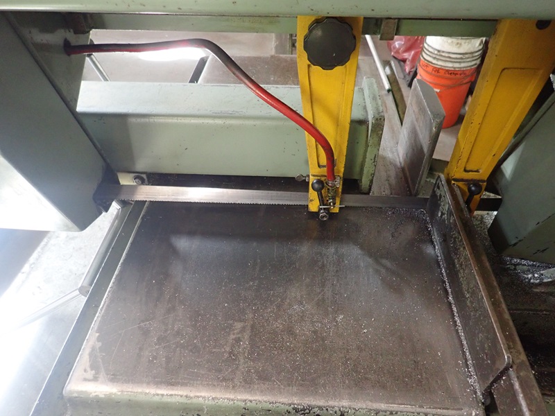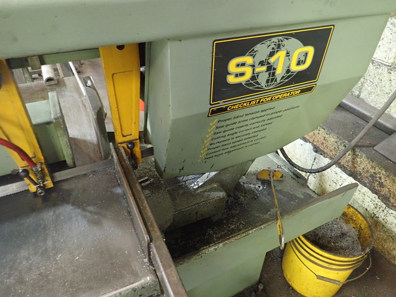 HORIZONTAL MITERING METAL BANDSAW, CLAMP, COOLANT SYSTEM, INFEED ROLLS, S/N: W0598091