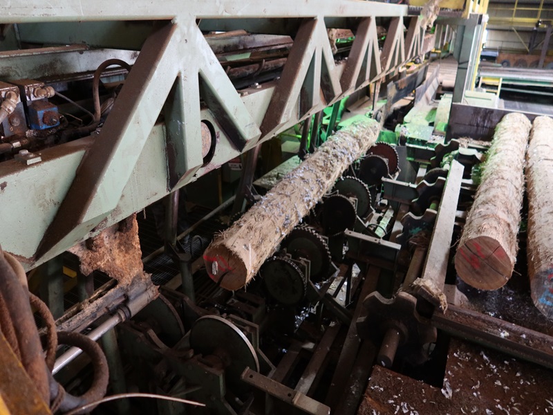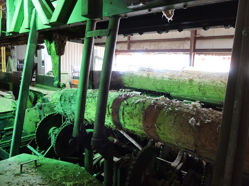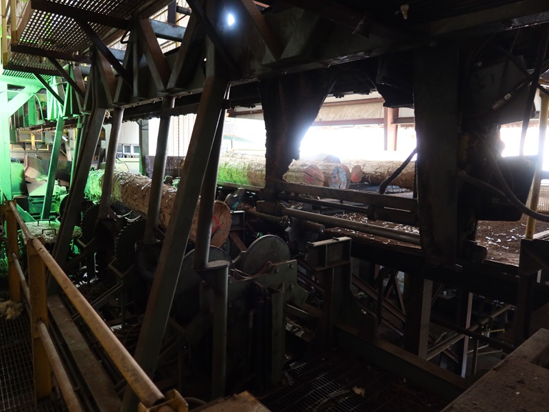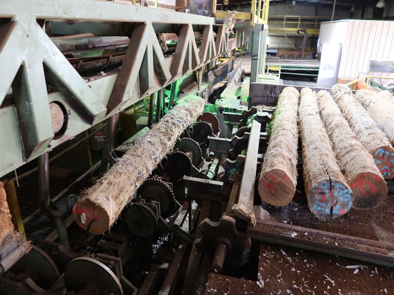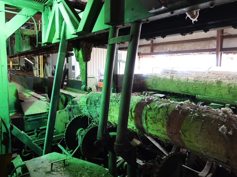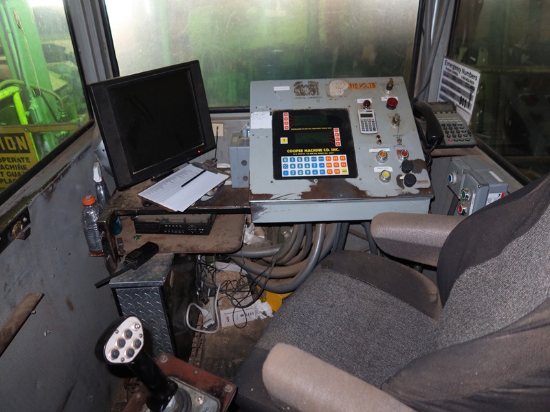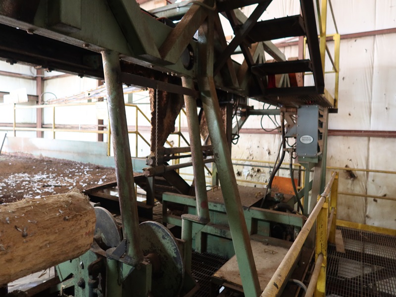 END-DOGGING SYSTEM OVERHEAD LOG CARRIAGE W/LOG POSITIONER ROLLS, 60' OVERHEAD RAIL, OPERATORS CAB(LOCATED AT THE FRAMETOWN SITE)