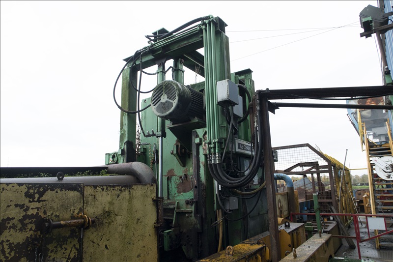 35" A6 6-ARM A/S LH RING DEBARKER, AIR SEAL, 100 HP RING DRIVE MOTOR, (2) TOSHIBA 30 HP MOTORS TO SM CYCLO 15:1 REDUCER FEED DRIVE, IN & OUTFEED ALLIGATOR CHAINS, HOLD DOWNS, APPROX. 20' 8"X11-1/2" INFEED BOX CHAIN LOG HAUL, APPROX. 14' 8"X11-1/2" OUTFEED BOX CHAIN LOG HAUL, CAB & CONTROLS