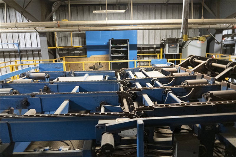 SINGLE BAND HORIZONTAL RESAW SYSTEM W/40" WHEELS, 16"X16"X16" CAPACITY, 75 HP MOTOR, APPROX. 9' 3-STRAND 4" HYDRAULIC DRIVEN FEED THRU SLAT CHAIN W/POWERED FEED TIRES, MAXI LUBE SYSTEM, CANT RUN AROUND SYSTEM W/APPROX. 16' 2-SECTION 4-STRAND H78 INFEED TRANSFER W/JUMP ROLLCASE, BOARD STOPS & HOOKS, APPROX. 16"X16' OUTFEED ROLLCASE TO APPROX. 16"X16' DIRECTIONAL ROLLCASE TO APPROX. 10' 4-STRAND 81X CROSS OVER TRANSFER TO APPROX. 16"X16' RE-ENTRY ROLLCASE TO APPROX. 16"X25' INFEED ROLLCASE, ALLEN BRADLEY 75 HP SMC PLUS CONTROLLER, DIRECT LOGIC 06-1205 PLC, CAB & CONTROLS