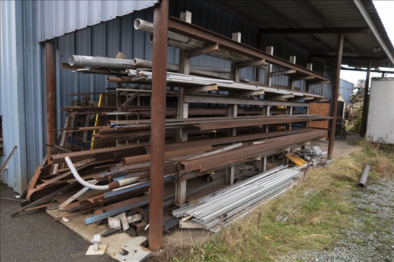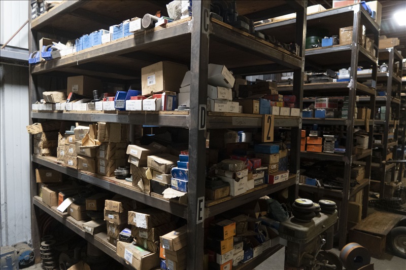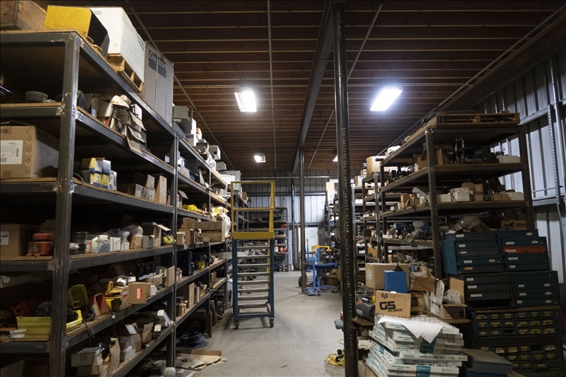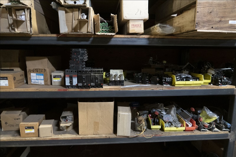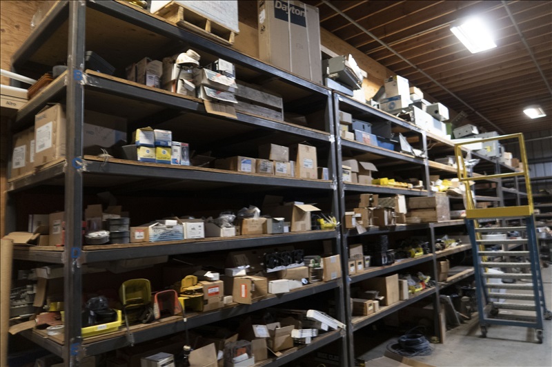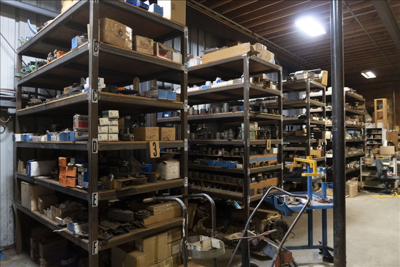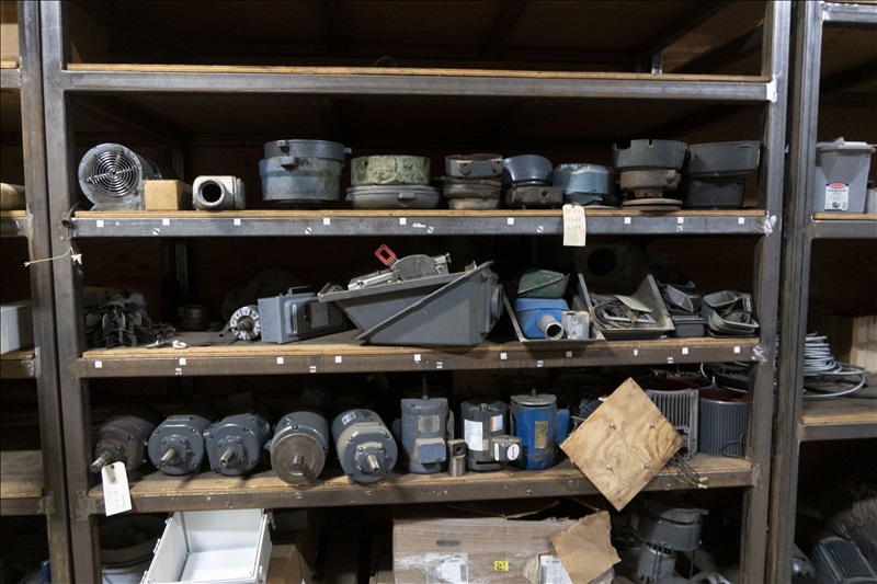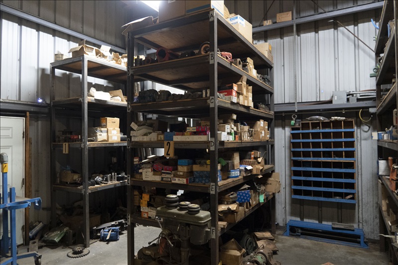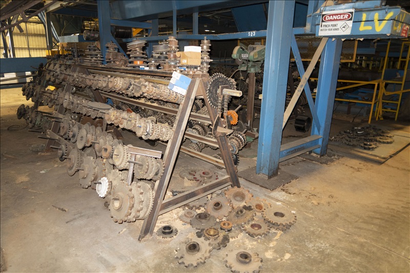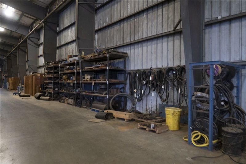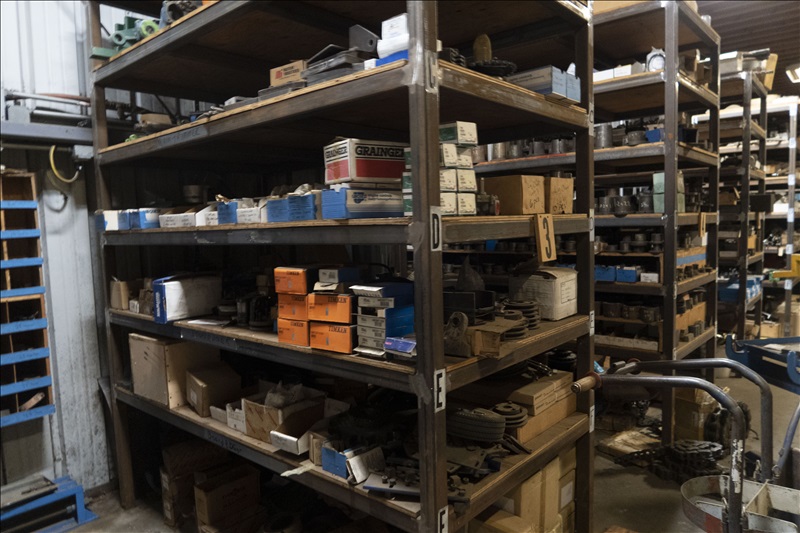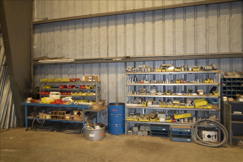 BEARINGS; MILL CHAIN; SPROCKETS; HYDRAULIC MOTORS & PUMPS; CYLINDERS; AIR BAGS; BELTING; SHEAVES; BELTS; FILTERS; SHAFTING; CONDUIT; PIPE FITTINGS; AIR BAGS; COUPLERS; VALVES; PARTS BINS; HYDRAULIC & AIR HOIST; ELECTRICAL; (2) 40' STEEL CONTAINERS/SHOPS; OFFICE EQUIPMENT & FURNITURE