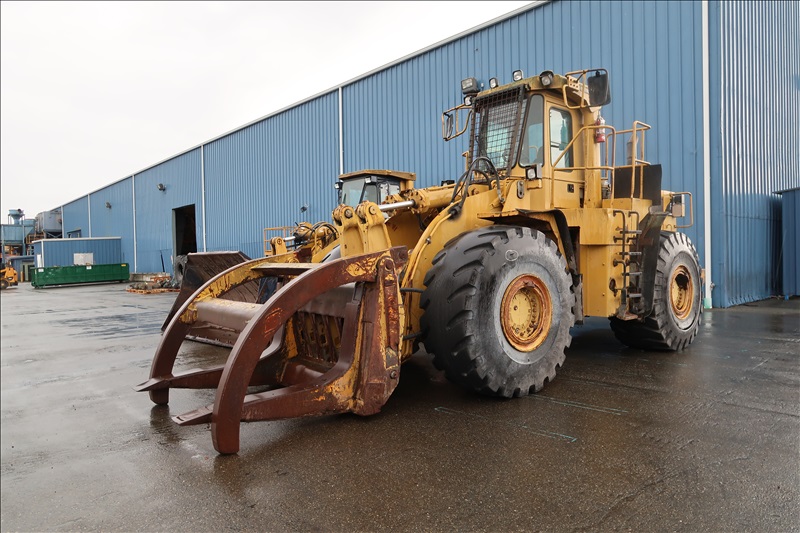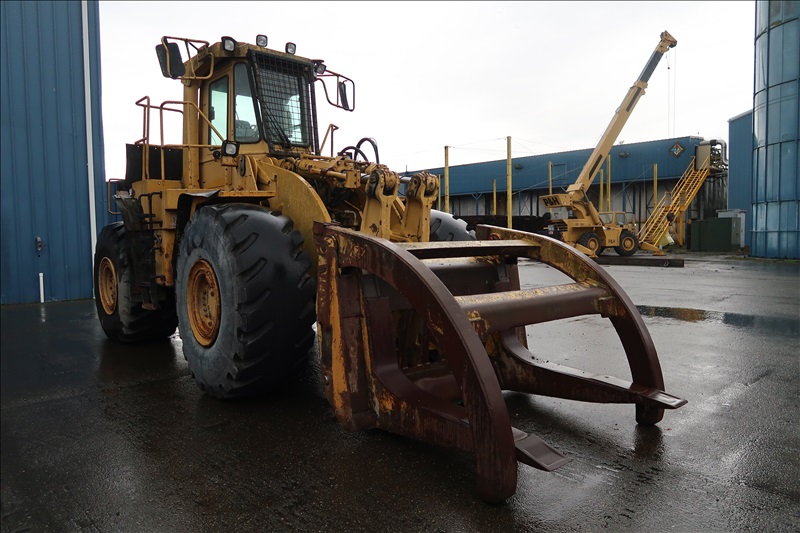 RUBBER TIRE LOG LOADER W/LOG FORKS, CAT 3406 DIESEL ENGINE, 29.5-25 TIRES