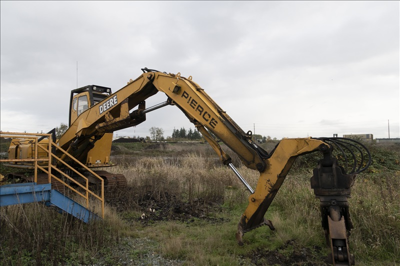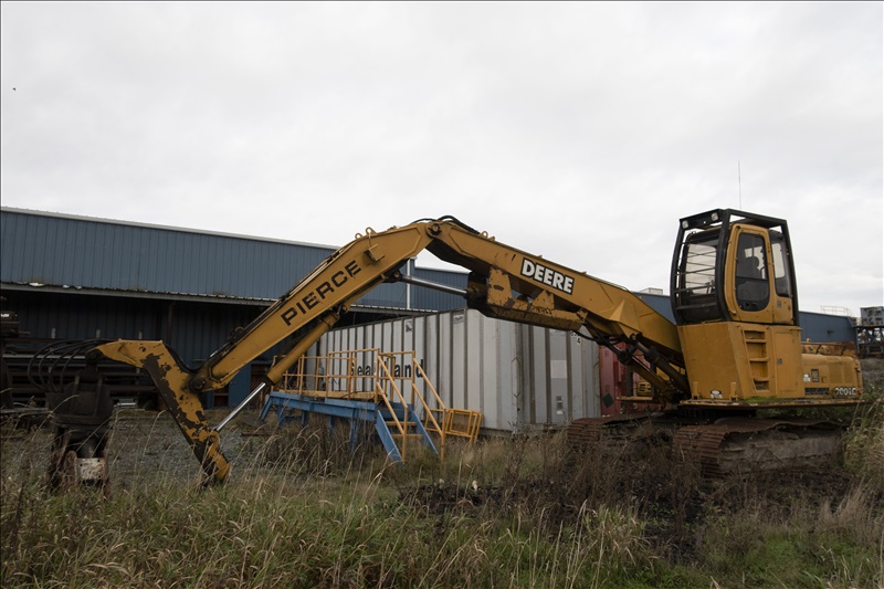 HEEL BOOM LOG LOADER W/SWIVEL GRAPPLE, JOHN DEERE 6-CYLINDER DIESEL, PIERCE BOOM, 31" TRIPLE GROUSER TRACKS