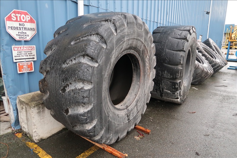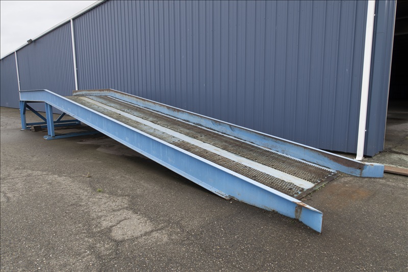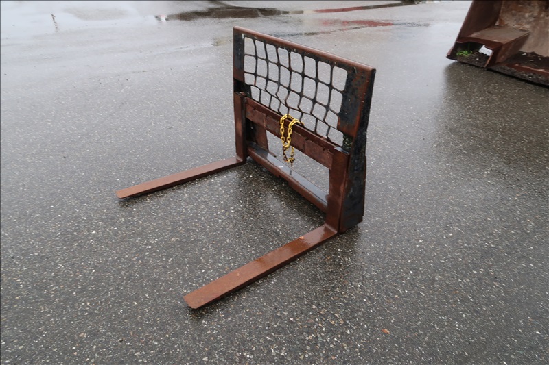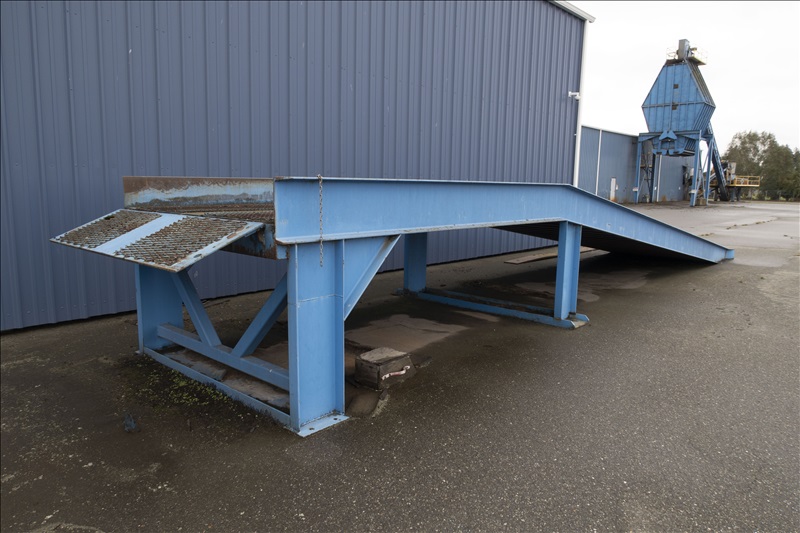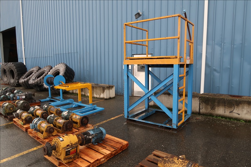 STEEL LOADING DOCK W/RAMP, APPROX. 84"-90"W X 39'L X 51"H W/GATE; BOBCAT 60" SWEEPER, S/N: 71442822; MEDFORD LOG FORKS; 980G FORK PARTS; MAN TOWER; (8) DUMPSTERS; SPARE TIRES