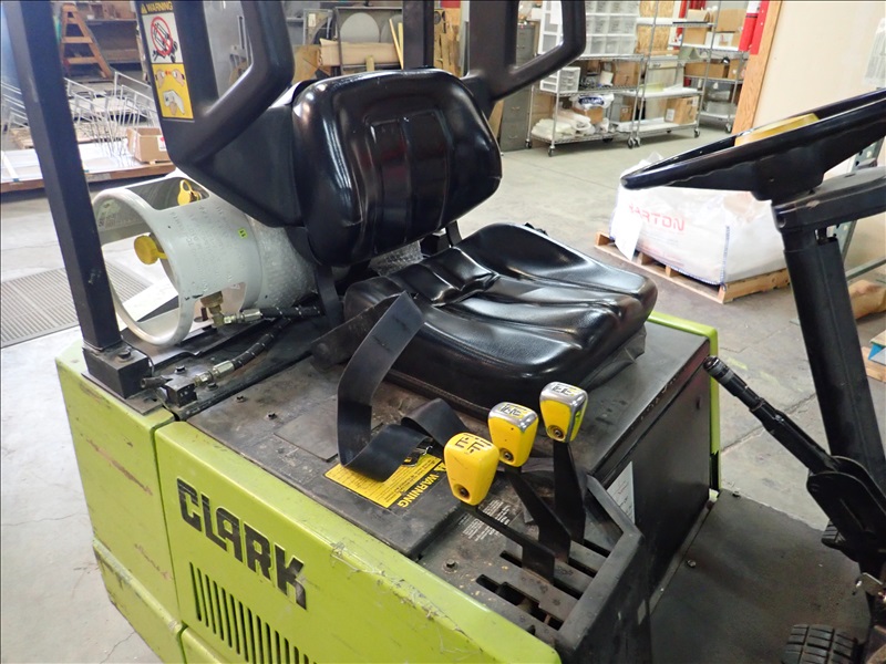 3,150 LB. CAPACITY SOLID TIRE FORKLIFT, 188" 3-STAGE MAST, SIDE SHIFT, PROPANE