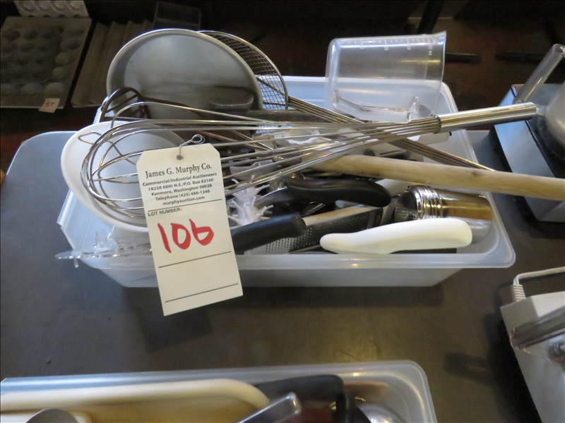 LOT, ASSORTED RESTAURANT UTENSILS IN THIS BIN