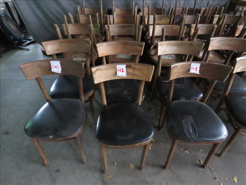 LOT, (8) WOOD FRAMED PADDED PATIO CHAIRS (SOME NEED REPAIR)