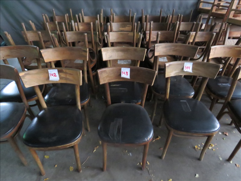 LOT, (8) WOOD FRAMED PADDED PATIO CHAIRS (SOME NEED REPAIR)
