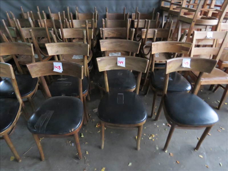 LOT, (8) WOOD FRAMED PADDED PATIO CHAIRS (SOME NEED REPAIR)