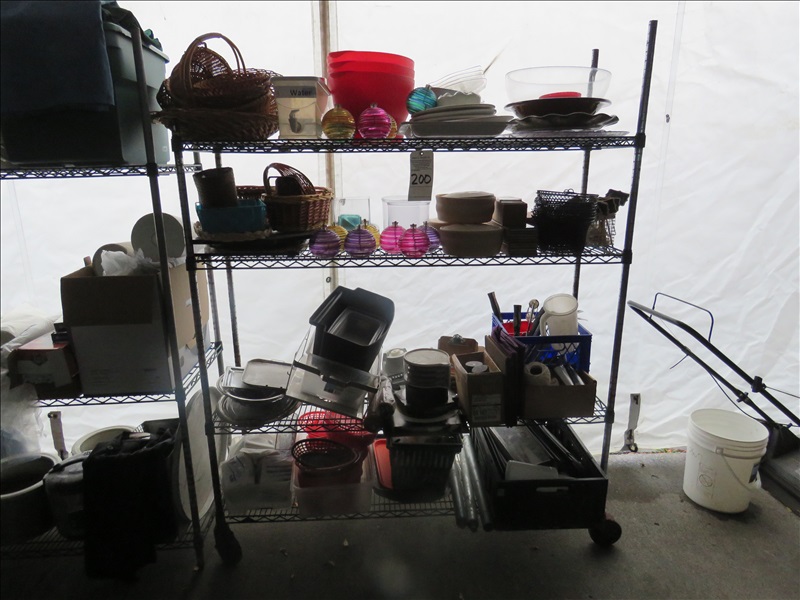 LOT, ASSORTED RESTAURANT SUPPLIES ON THIS SHELF (DOES NOT INCLUDE SHELF)