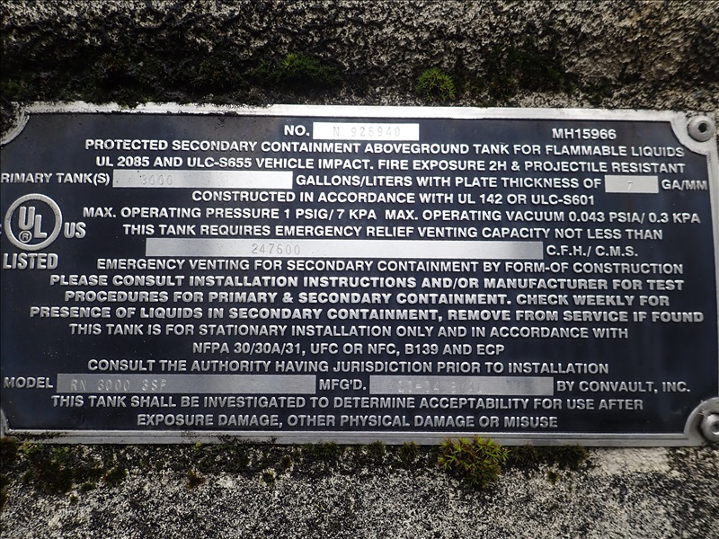 3,000 GALLON ABOVE GROUND FUEL TANK
