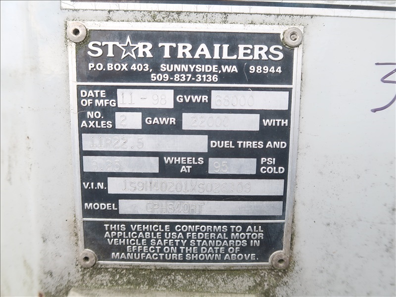 T/A, 40', 68,000 LB GVWR WALKING FLOOR TRAILER, SPRING SUSPENSION, TARPING SYSTEM, SWING DOORS, A/B, 11R22.5 (TARPING SYSTEM NEEDS REPAIR, SIDE WALLS HAVE SOME RUST HOLES, PLEASE PREVIEW)