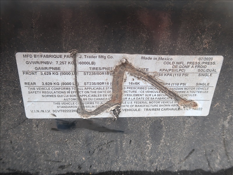 T/A, 22' X 8', 16,000 LB GVWR TILTBED EQUIPMENT TRAILER, E/B, 235/80R16 (MINOR FRAME DAMAGE ON TONGUE & MISSING WET HUB OIL SEAL CAP, PLEASE PREVIEW)