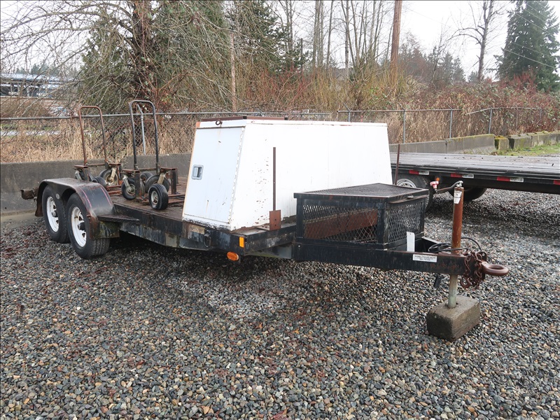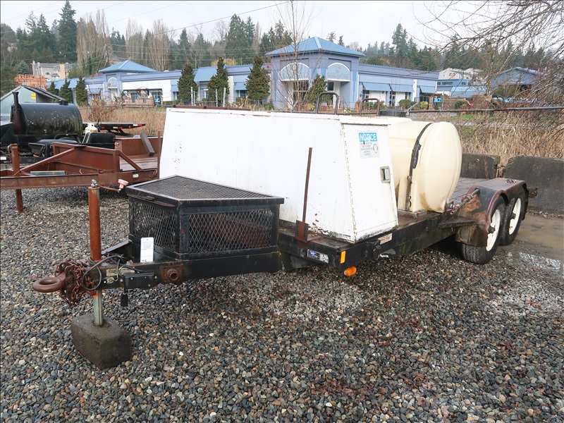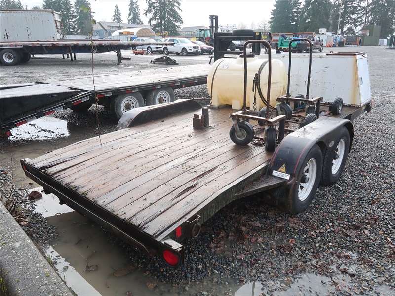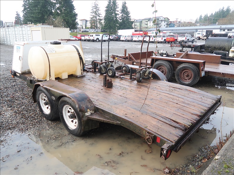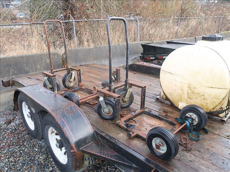 T/A, 16' X 6'10", 9,990 LB GVWR, BEAVERTAIL FLATBED TRAILER, 110-GAL POLY TANK, STORAGE BOX, CARTS, RAMPS, E/B, 225/75R15