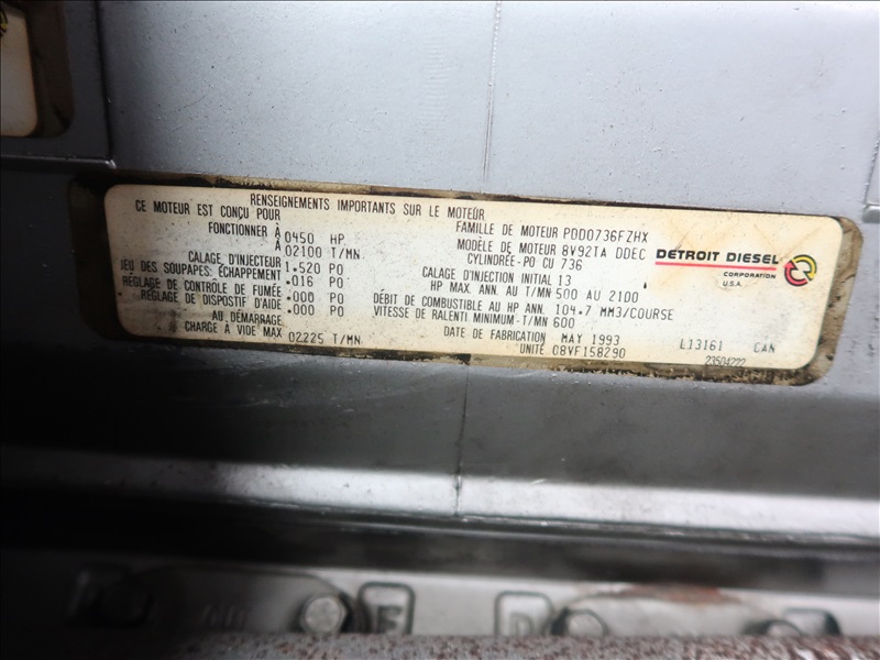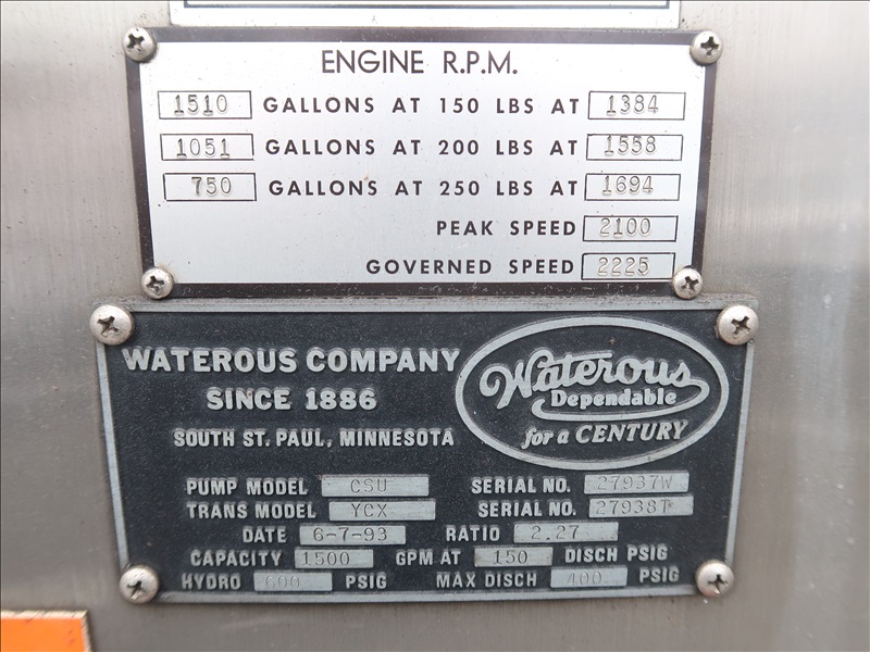 PUMPER FIRE TRUCK, DETROIT 8V92, AUTO, 1,500 GAL, 1,500 GPM DETROIT 8V92TA, AUTO