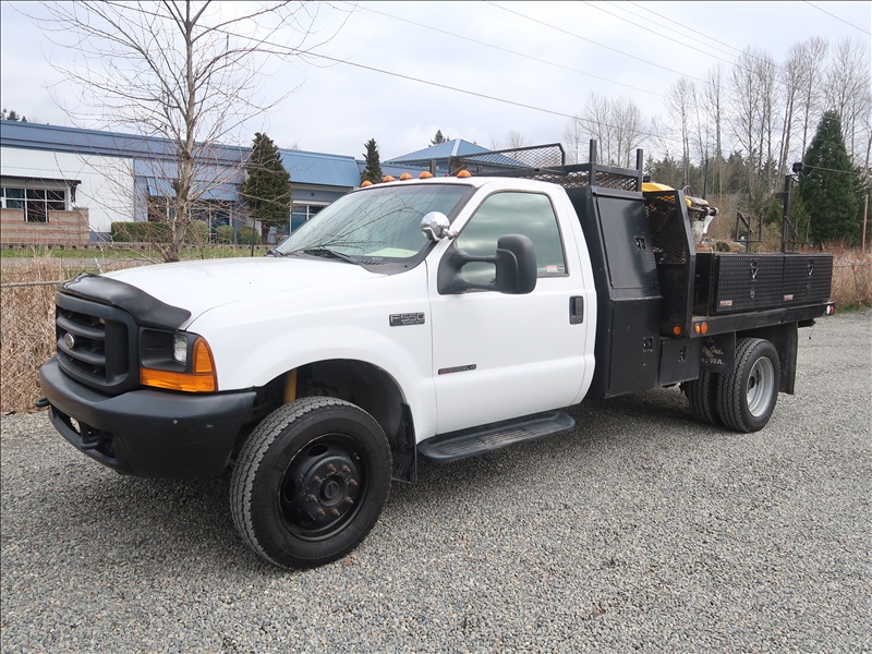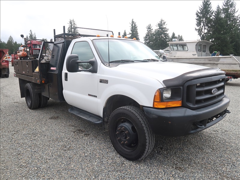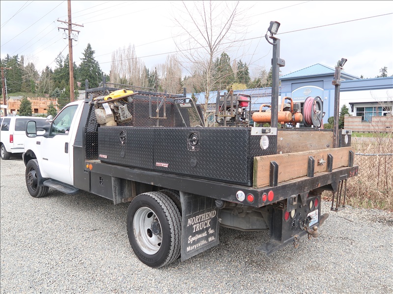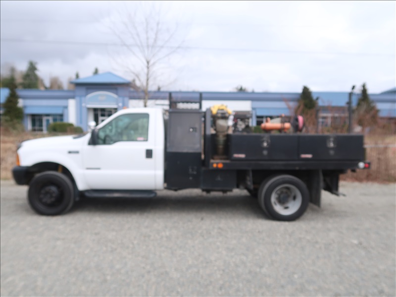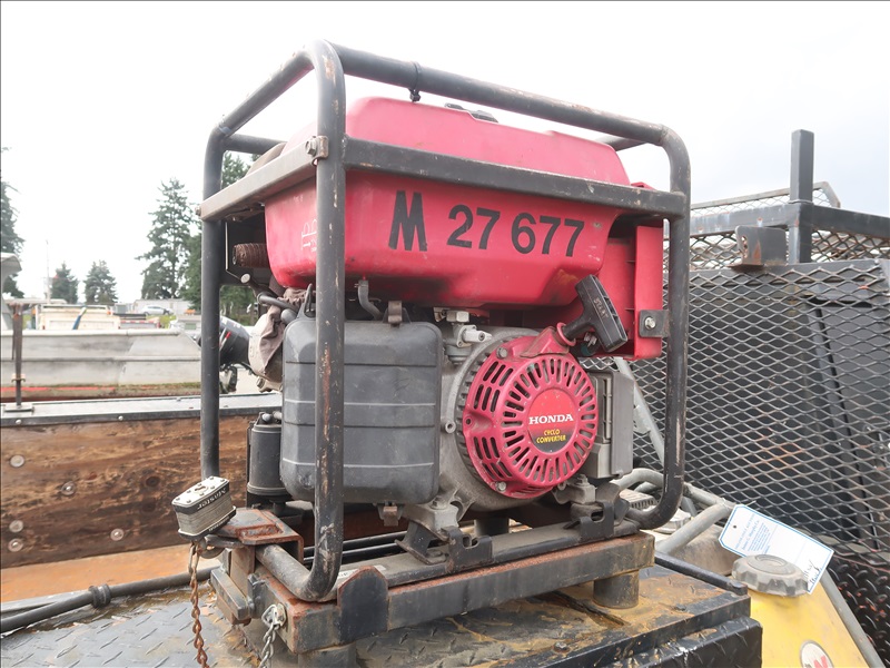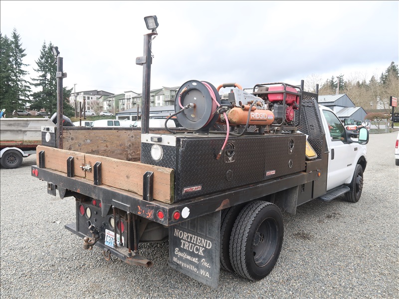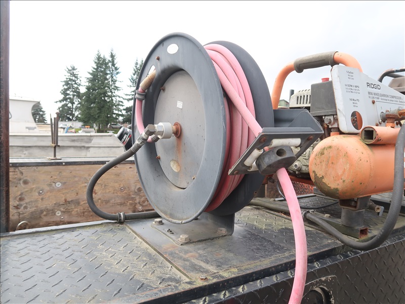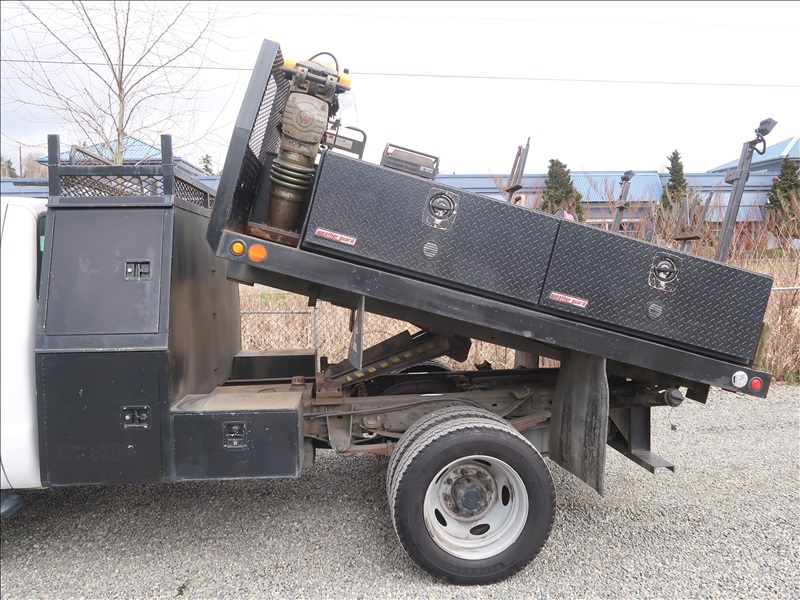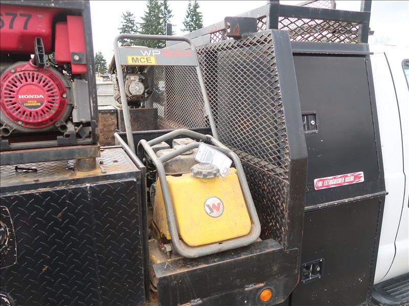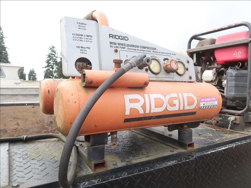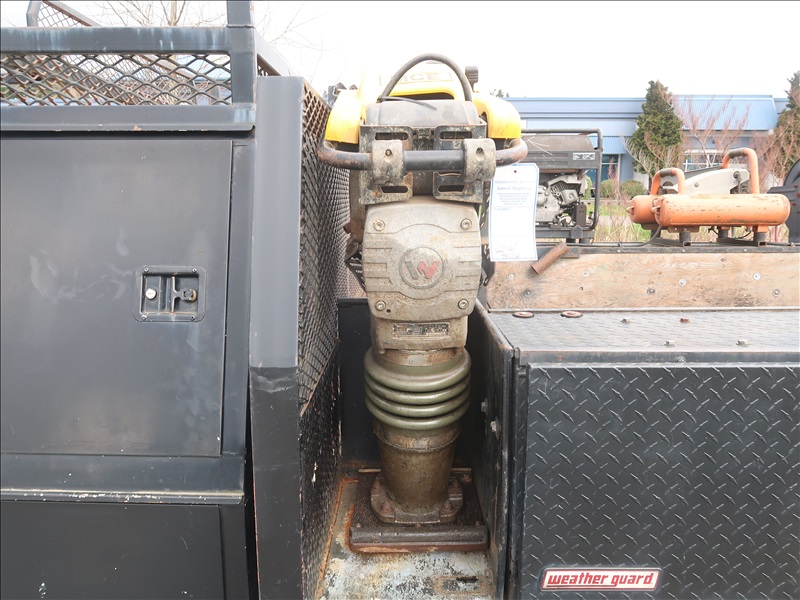 9' FLATBED/DUMP, POWER STROKE, AUTO, 4 WD W/HONDA 3000 GENERATOR, RIDGID AIR COMPRESSOR, WACKER 1550 PLATE COMPACTOR, WACKER BS60-4S RAMMER